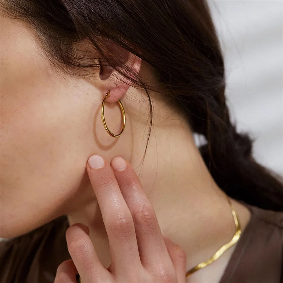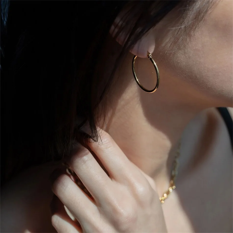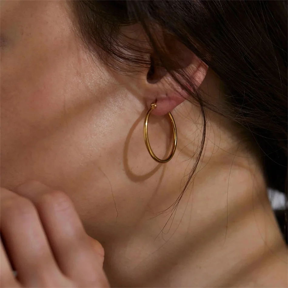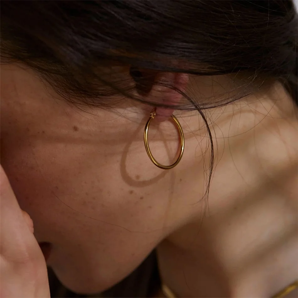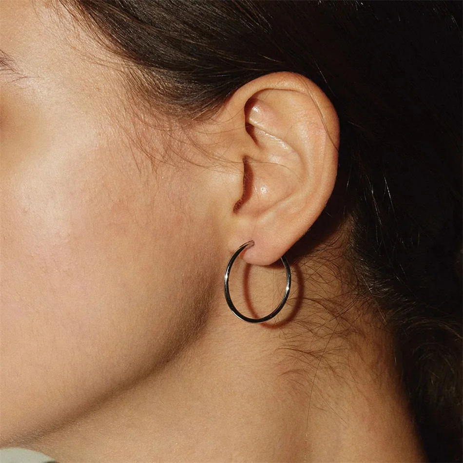 25MM Fashion Stainless Steel Earring for Women Minimalist Thin Hoop Earrings Women Trendy Ear Rings – The Brands Fusion