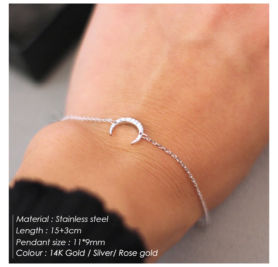 Ladies Simple Stainless Steel Bracelets Moon Charm Bracelet for Women Gold Color Brand Fahsion Jewelry