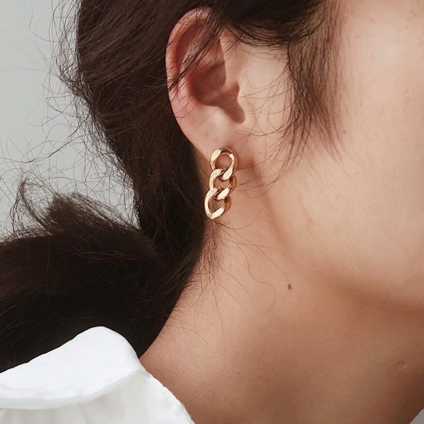 Punk Cuban Link Chain Stud Earrings for Fashion Women Genuine Gold Plated Ring Clasp Dangle Rock Jewelry Gift – The Brands Fusion