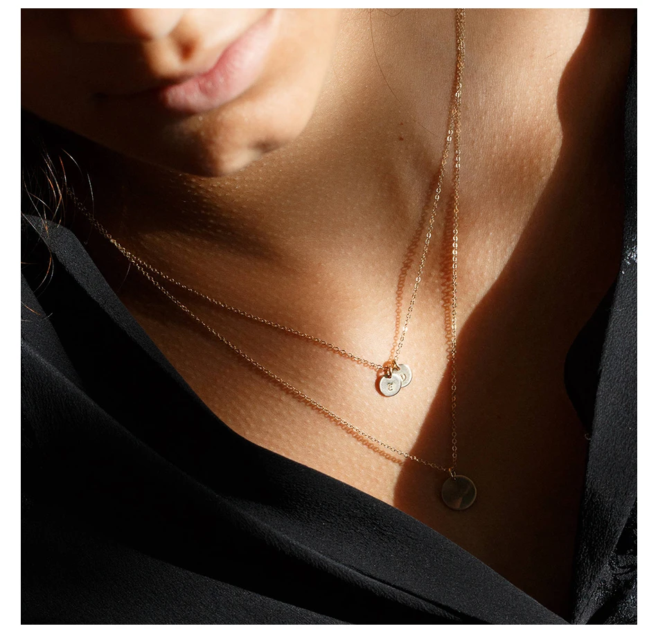 initial pendant custom name letter stainless steel necklace women statement nameplate layered choker necklace – The Brands Fusion