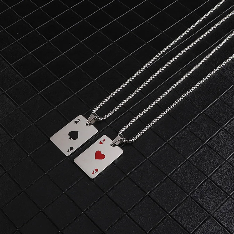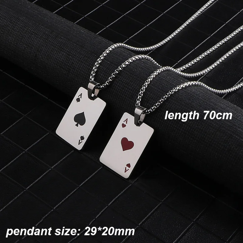 Men Statement Poker Lucky Ace of Spades Pendant Necklace Red Black Silver Color Stainless Steel Long Chain Necklaces Women Jewelry