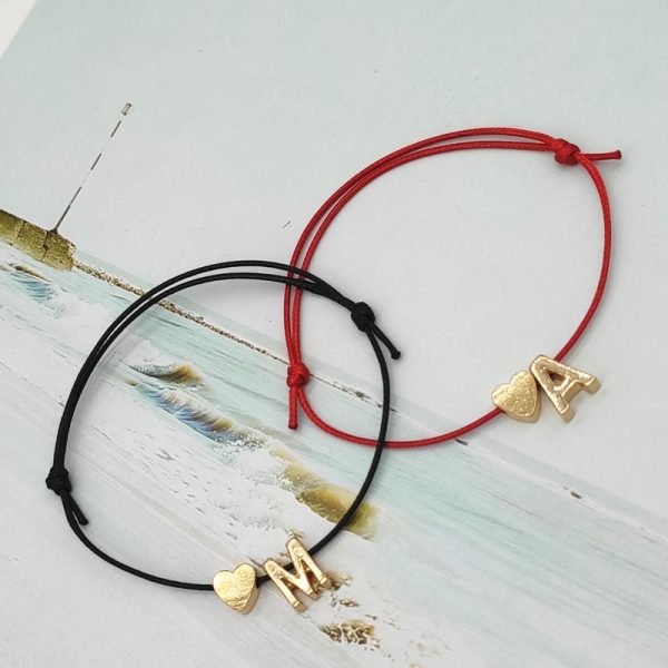 2019 New Gold Color Tiny Heart Initials Name Charm Letter Bracelet For Women Men Lucky String Rope Red Bracelets Couple Gifts