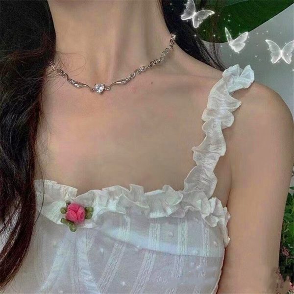 Silver Color Irregualr Choker Necklace for Women Love Heart Crystal Clavicle Chain Necklace Wholesale Jewelry