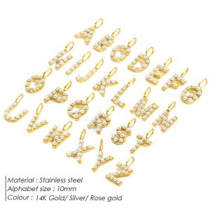 Wholesale 14k Gold Plated Personalized Minimalist Pearl Alphabet Initial Letter Pearl Charms For Jewelry Making